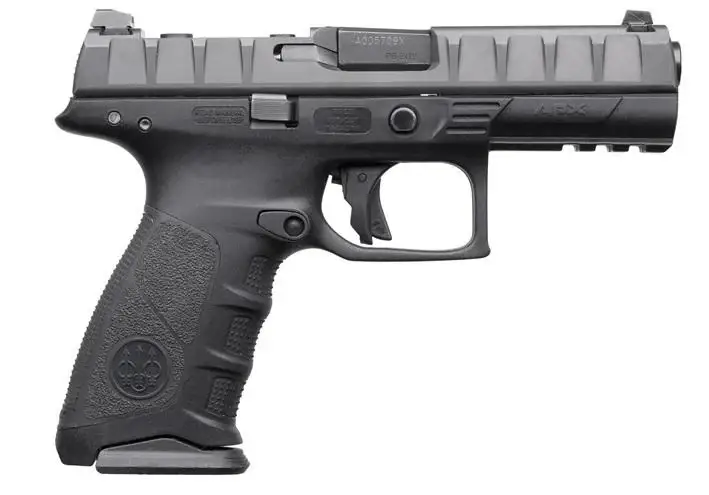 The Beretta's APX is designed specifically for military and law enforcement operators. It delivers superior performance in durability and reliability, ergonomics, trigger, and modularity. It utilizes a removable, serialized chassis frame, striker fire operating system, three interchangeable back straps, full length slide serrations, reversible magazine release, and an ambidextrous slide stop. The APX RDO incorporates a factory slide cut to accept one of four different optic plates. The pistol plates support Mini-Red Dot Optics from Burris, Trjicon, Leupold, and C-More. Included is a fixed blanking plate that covers the slide cut and allows the pistol to be used sans optic mount. This 40S&W model has a black finish, 4.25" barrel, and comes with a 15-round magazine.