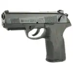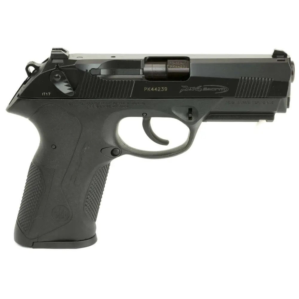 Beretta's Px4 Storm features an exclusive Beretta-designed locked breech with a rotating barrel system which reduces felt recoil and muzzle rise. The chrome-lined barrel provides extreme corrosion resistance and also features a deeply-recessed combat muzzle crown to protect the rifling. The light yet durable frame employs modern thermoplastic technology through the use of technopolymer-reinforced fiberglass and features an integral Picatinny MIL-STD rail. The Px4 Storm has an ambidextrous safety/decocking lever and a reversible magazine release, and it may be configured with a small, medium, or large backstrap for individual fit (3 backstraps included). The modular structure, ergonomics, and interchangeability of parts make the Px4 Storm the ideal firearm for law enforcement use and personal defense. This 45ACP comes with a 10-round magazine.