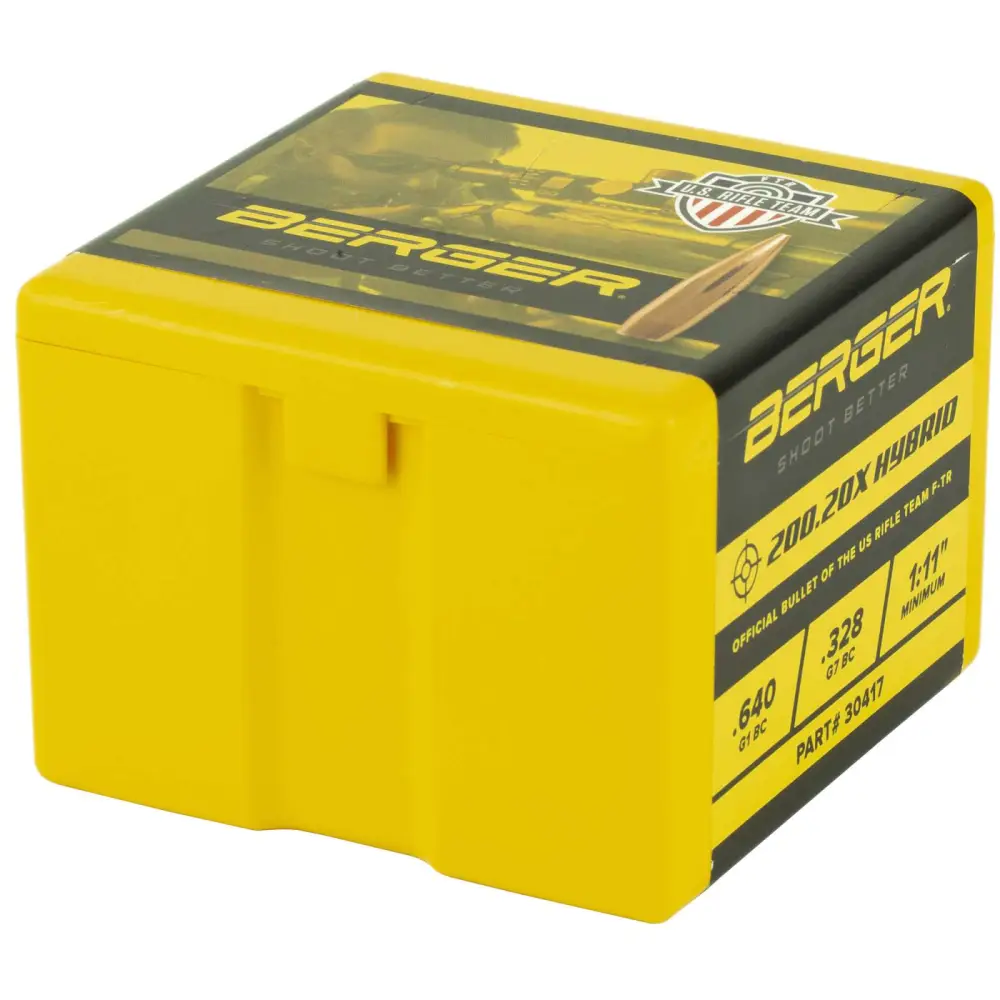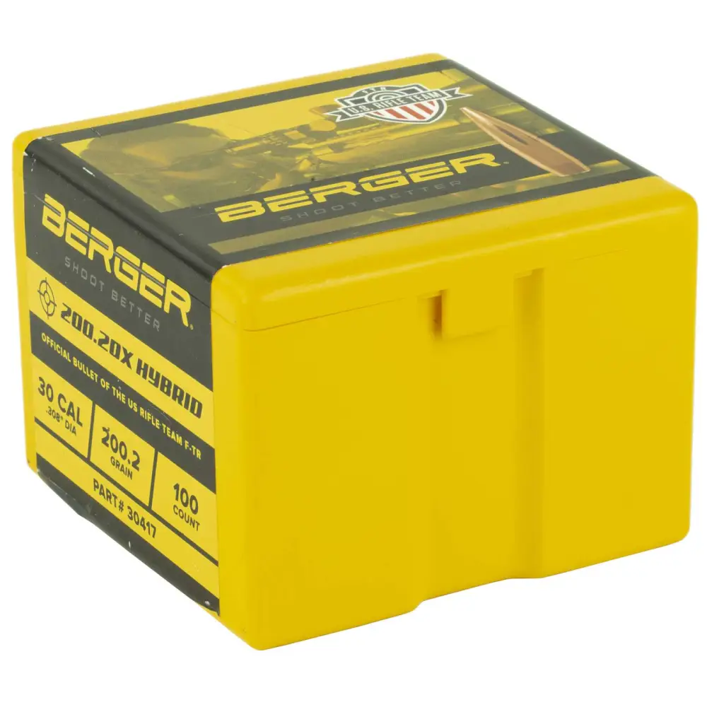 Berger 30 Caliber 200 Grain 200.20x Target Bullets utilize Bergers industry-leading hybrid ogive, which blends tangent and secant designs to optimize efficiency, reduce wind-drift, and minimize sensitivity to seating depth. The 200.20x Target Bullet was developed with the assistance of the U.S Rifle Team (F-TR) and is the offical bullet for team use during the 2017 F-Class World Championships. $1.00 from every box purchased is donated by Berger Bullets to help support the team. The 200.20x Bullets are competition-proven and a favorite amongst today's top long-range competition shooters. Made with J4 Precision Jackets, the 200.20x like all other Berger Bullets, have exacting tolerance and near perfect construction.