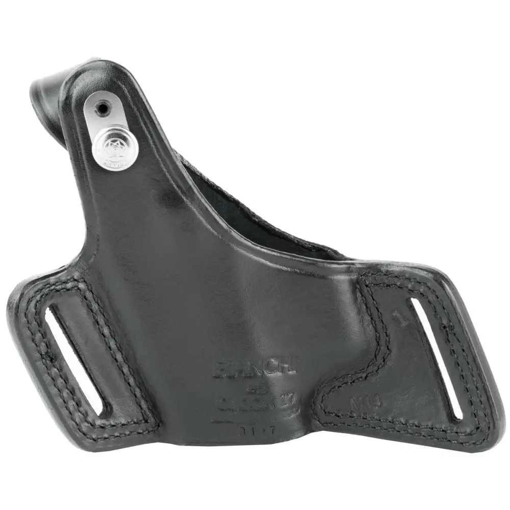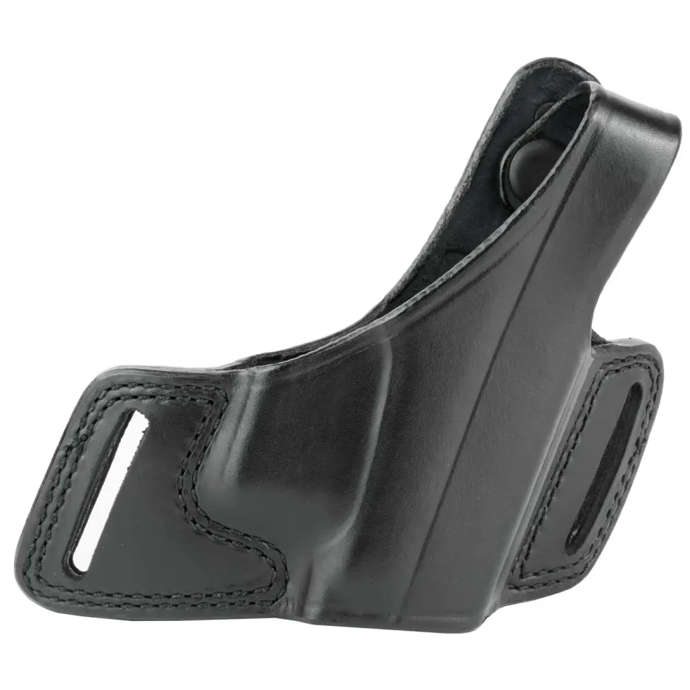 The Black Widow belt slide holster is worn on the hip and offers an ultra hi-ride carry and a thumb snap closure. The dual belt slots provide stability and its open muzzle design offers pistols of the same model with different barrel lengths. Its compact profile offers and widely spaced belt slots allow the pistol to ride close to the body for both comfort and concealability.