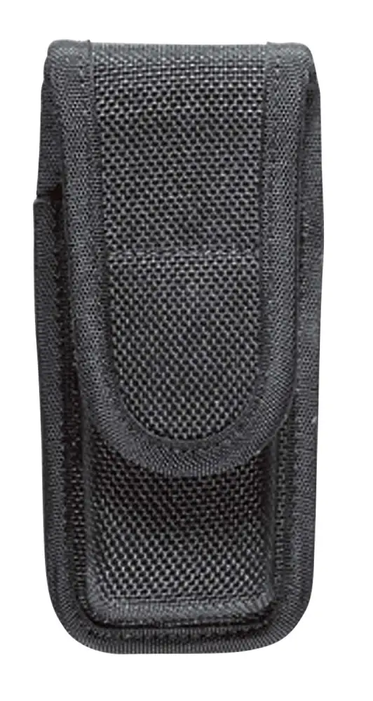 The Model 7303 Single Magazine/Knife Pouch features vertical carry with a hook and loop closure to secure the item. It is custom molded and contoured for long lasting shape and precise fit. Featuring AccuMold trilaminate construction with ballistic weave exterior and Coptex lining, the pouch cavity expands both front and rear for a trim look. The dual web belt loop design accommodates both 2" (50mm) and 2.25" (58mm) belts.