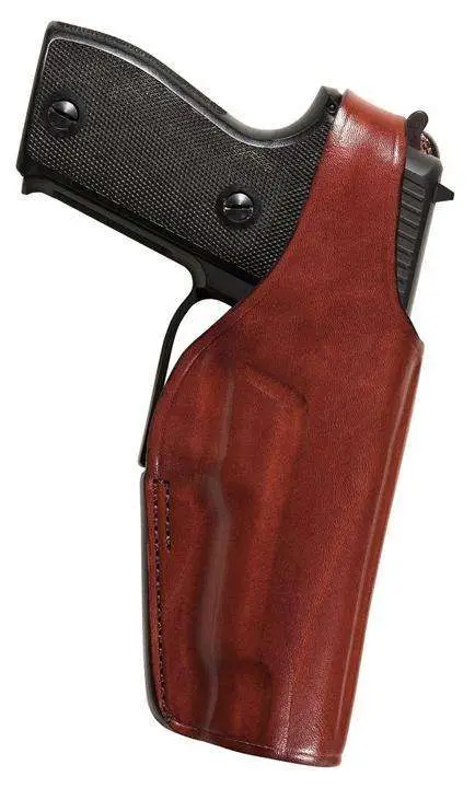 The 19L Thumbsnap leather hi-ride holster is worn on the hip close to the body for concealability with soft suede lining for protection of the firearm. Made for semiautomatics it features a traditional thumb break design and carries the pistol at a slight forward cant. It has a wide belt loop for stability, a low-cut leading edge and Bianchi's Sight Channel to protect the front sights.