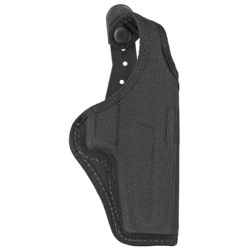 Suitable for outdoor and concealment applications, this holster rides at a 10 -13 degree forward angle for a fast, instinctive draw. Its Roll-Top thumb break strap wraps cleanly over the hammer and effectively retains the handgun. Belts easily slide through the Quick-Slide 1.75" injection molded belt loop.