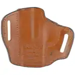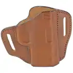 The open-top, hip-carry Model 57 Remedy Belt Slide holster is an outside-the-waistband holster with a low-profile, ensuring comfort and concealability. Designed for semi-automatics and small frame revolvers, this hi-ride model features deeply molded contours on the front of the holster to provide a secure gun fit with a classic style; open-top for quick access and draw, ideal for rear hip carry, rear belt slots pull holster close to the body. The Remedy Belt Slide holster features two slots for belts up to 1.5" wide for a comfortable, snug fit on the body.
