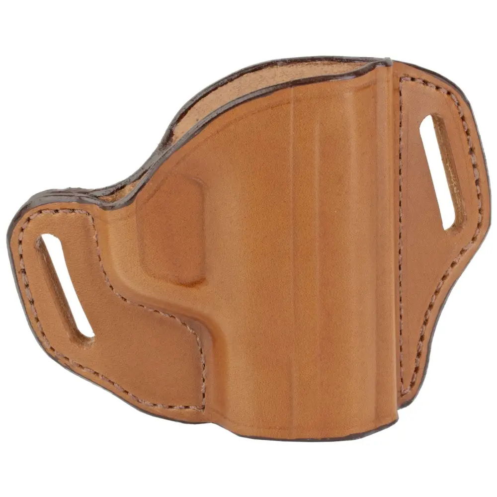 Bianchi's Remedy Belt Slide holster features an open-top design for semiautomatics and small frame revolvers. It's designed for hip carry and features deep contour molding. The fully molded holster front provides improved comfort, while the open top design provides quick and convenient access. It is made of premium, full grain leather with a slim profile and fits belts up to 1.5" wide.