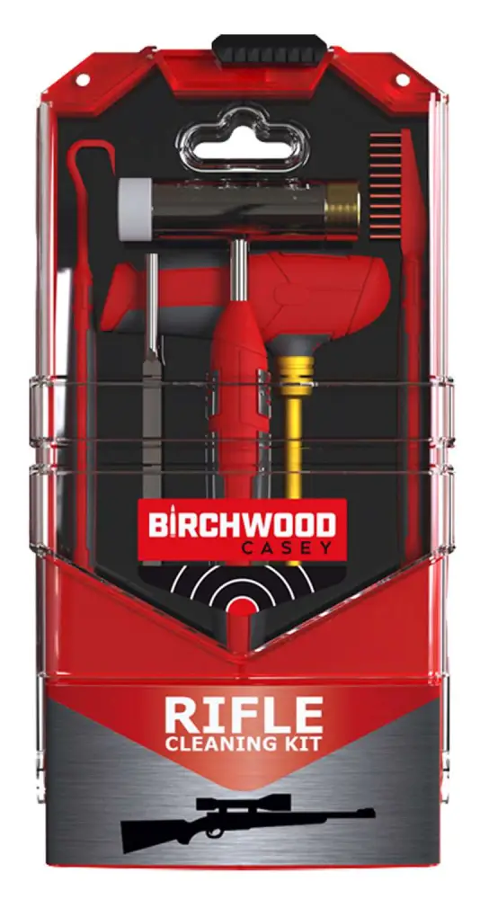 Birchwood's Universal Rifle Cleaning Kit has a kickstand feature on the high-performance case keeps tools at your fingertips. The unique handle includes locking chuck and secures each tool in place.