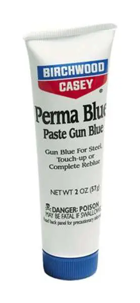 The longest lasting finish, but slower to darken than the liquid blues. Easy to use, perma blue paste gun blue reacts slowly with the metal but builds up a denser finish that will outlast the liquid blues. Excellent for touch up or complete reblueing.