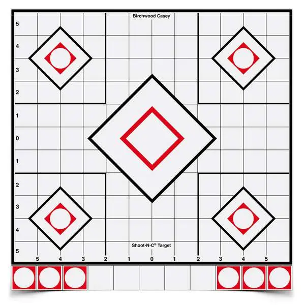 Birchwood Casey 34219 Shoot-N-C Sight-In Self-Adhesive Adhesive Paper 12" 5-Diamond White Target Paper w/Black & Red Accents 5 Per Pack