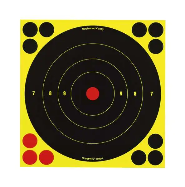 The Birchwood Shoot-N-C Bull's-Eye targets are great for close-range shooting with airguns and sharp shooting with .22 rimfire or centerfire guns. Bullet holes are easy to spot with bright chartreuse rings on these self-adhesive targets. You can design your own custom targets with these easy to place targets. Great for indoor or outdoor use and low-light conditions. Includes repair plasters to lengthen target life.