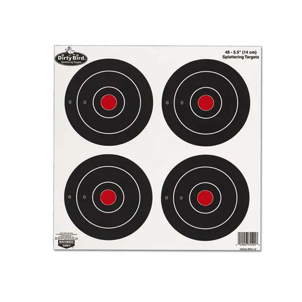 Birchwood's Dirty Bird Bull's-Eye Targets help spot your shots easily with white splatter contrast. The heavy tagboard targets are great for indoor or outdoor use. The target is non-adhesive which allows you to affix to any surface you wish, add notes and easily save the targets for future reference.
