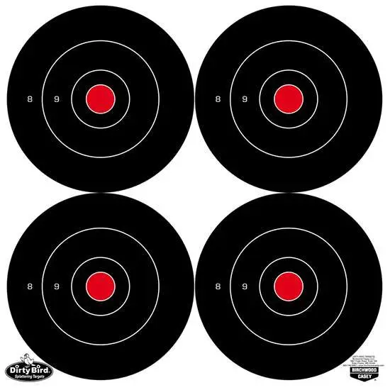 Birchwood's Dirty Bird Bull's-Eye Targets help spot your shots easily with white splatter contrast. The heavy tagboard targets are great for indoor or outdoor longer range shooting. The target is non-adhesive which allows you to affix to any surface you wish, add notes and easily save the targets for future reference.