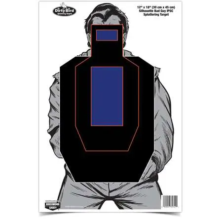 Birchwood Casey's Dirty Bird Bad Guy IPSC target allows you to spot your shots easily with "intense white" splatter for superior downrange contrast. The heavy tagboard construction is great for indoor or outdoor use, and all types of pistol-action shooting. The non-adhesive back also allows you to affix to a surface as you wish, add notes, and then easily save the targets for future reference. Perfect for all shooting or training applications.