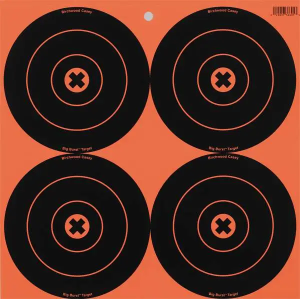 Birchwood's Big Burst 3" Bull's-Eye Targets allows you to shoot from any distance and see your shot. The orange and black targets bullet holes burst into high visibility white to give you maximum contrast for maximum viability. These targets are self adhesive for easy set up.