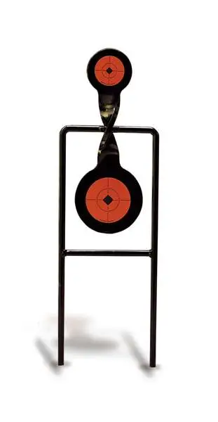 Birchwood's World of Targets Double Mag Target allows you to shoot, reset, shoot again. Experience hours of shooting fun with your Centerfire handguns up to .44 mag (no rimfires). Each target is hung from a durable welded steel frame to provide years of trouble free practice. Targets include high visibility target spots. There are two disc spinners targets 3" and 4.25" paddle. Portable and easy to use spinning targets mean no more knocked down targets to set up, a foot rest makes it easy to push targets into the harde.
