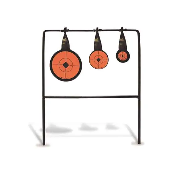 Each target is hung from a durable welded steel frame to provide years of trouble free practice. Targets include high visibility target spots. There are three different sizes 3.625" paddle, 2.25" paddle and 1.625" paddle, that will challenge the marksman, sharpshooter or expert. Portable and easy to use spinning targets mean no more knocked down targets to set up, a foot rest makes it easy to push targets into the harde.