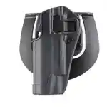 Blackhawk's Serpa Sportster Holster is designed for civilian concealed carry or range use. Constructed of injection molded polymer for long-lasting durability with the patented Auto-Lock technology. Features- passive retention detent adjustment screw; speed-cut design for rapid draw, target acquisition and re-holster; paddle platform and the "L" shaped button which is optimized for security and performance. Fits Shoulder, S.T.R.I.K.E., Quick Disconnect and Tactical Holster Platforms. Gunmetal gray holster body with black locking mechanism. Made in the USA.