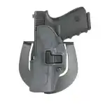 Blackhawk's Serpa Sportster Holster is designed for civilian concealed carry or range use. Constructed of injection molded polymer for long-lasting durability with the patented Auto-Lock technology. Features- passive retention detent adjustment screw; speed-cut design for rapid draw, target acquisition and re-holster; paddle platform and the "L" shaped button which is optimized for security and performance. Fits Shoulder, S.T.R.I.K.E., Quick Disconnect and Tactical Holster Platforms. Gunmetal gray holster body with black locking mechanism. Made in the USA.