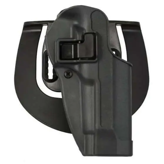 Blackhawk's Serpa Sportster Holster is designed for civilian concealed carry or range use. Constructed of injection molded polymer for long-lasting durability with the patented Auto-Lock technology. Features- passive retention detent adjustment screw; speed-cut design for rapid draw, target acquisition and re-holster; paddle platform and the "L" shaped button which is optimized for security and performance. Fits Shoulder, S.T.R.I.K.E., Quick Disconnect and Tactical Holster Platforms. Gunmetal gray holster body with black locking mechanism. Made in the USA.