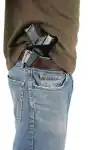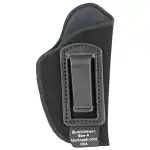 Blackhawk's Inside The Pants holster made of a soft laminate suede with nylon lining for easy draw. Belt clip slips over pants or belt to retain holster. Fits Small Autos 9.22/.25) and very small frame .32 and .380s.