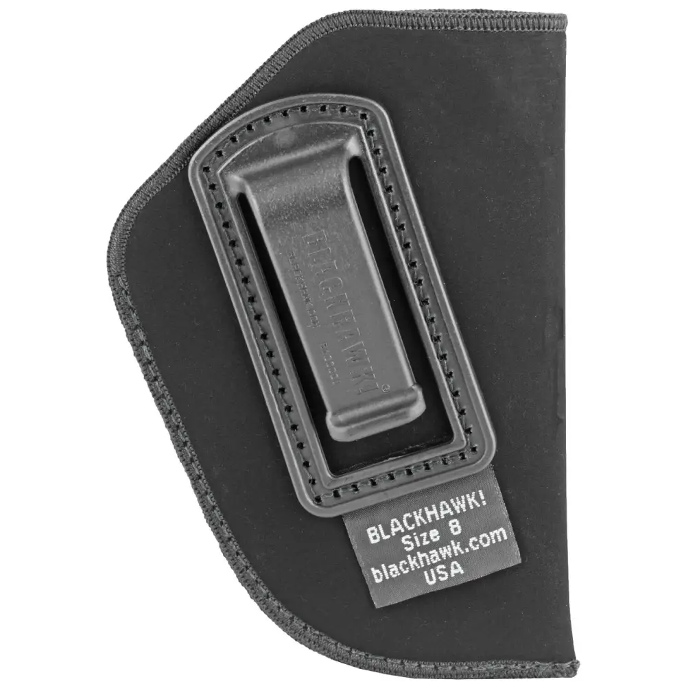 Blackhawk's Inside The Pants holster made of a soft laminate suede with nylon lining for easy draw. Belt clip slips over pants or belt to retain holster.
