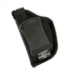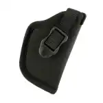 This classic, medium high ride design allows you to carry your favorite revolver or auto on any belt up to 2" wide. Made of 1000 denier nylon, closed cell foam padding and smooth nylon lining. Tough nylon web retention strap has combination adjustment buckle and sturdy snap for easy draw. Sizes accommodate small, medium and large frame revolvers and autos.