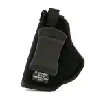 This classic, medium high ride design allows you to carry your favorite revolver or auto on any belt up to 2" wide. Made of 1000 denier nylon, closed cell foam padding and smooth nylon lining. Tough nylon web retention strap has combination adjustment buckle and sturdy snap for easy draw. Sizes accommodate small, medium and large frame revolvers and autos.