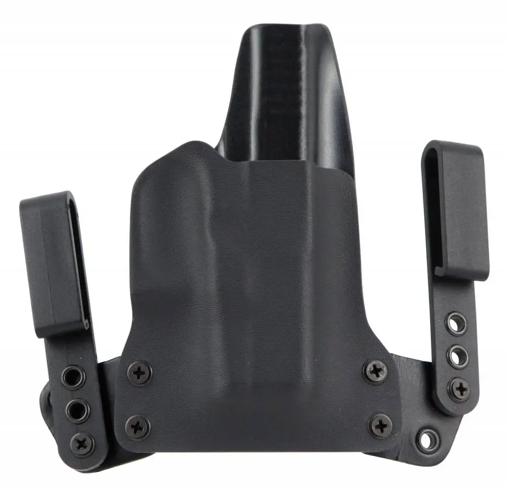 The Mini Wing is designed to be minimalistic, the Mini Wing uses as little material as possible, without sacrificing performance or durability. Dedicated to maintaining a thin profile, this holster allows for deep concealment matched with ultimate comfort. The pairing of Kydex and leather allows for the Kydex to reliably retain your pistol without a break in or wear out period. In addition, the Kydex shell prevents the holster from collapsing when your pistol is drawn, and remains open for easy one handed holstering. The leather mini wings are incorporated to allow the holster to wrap around the contours of your waist, allowing for a versatile fit for all body types. The mini wings give the holster flexibility to move with your body, making it comfortable for use all day, every day. The mini wings were constructed to provide the user with a variety of different configurations for IWB carry as well as a wind range of cant and ride height adjustments. This provides the user with a variety of available carry positions around the waist, from appendix, all the way to the small of the back. Thread Locker is applied to all screws to prevent loosening over time. Ride height and cant can be adjusted by changing the position of the IWB loops and wings. Made in the USA.