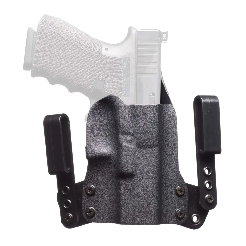The Mini Wing is designed to be minimalistic. It uses as little material as possible, without sacrificing performance or durability. Dedicated to maintaining a thin profile, this holster allows for deep concealment matched with ultimate comfort. The pairing of Kydex and leather allows for the Kydex to reliably retain your pistol without a break in or wear out period. In addition, the Kydex shell prevents the holster from collapsing when your pistol is drawn, and remains open for easy one handed holstering. The leather mini wings are incorporated to allow the holster to wrap around the contours of your waist, allowing for a versatile fit for all body types. The mini wings give the holster flexibility to move with your body, making it comfortable for use all day, every day. The mini wings were constructed to provide the user with a variety of different configurations for IWB carry as well as a wind range of cant and ride height adjustments. This provides the user with a variety of available carry positions around the waist, from appendix, all the way to the small of the back. Thread Locker is applied to all screws to prevent loosening over time. Ride height and cant can be adjusted by changing the position of the IWB loops and wings. Made in the USA.