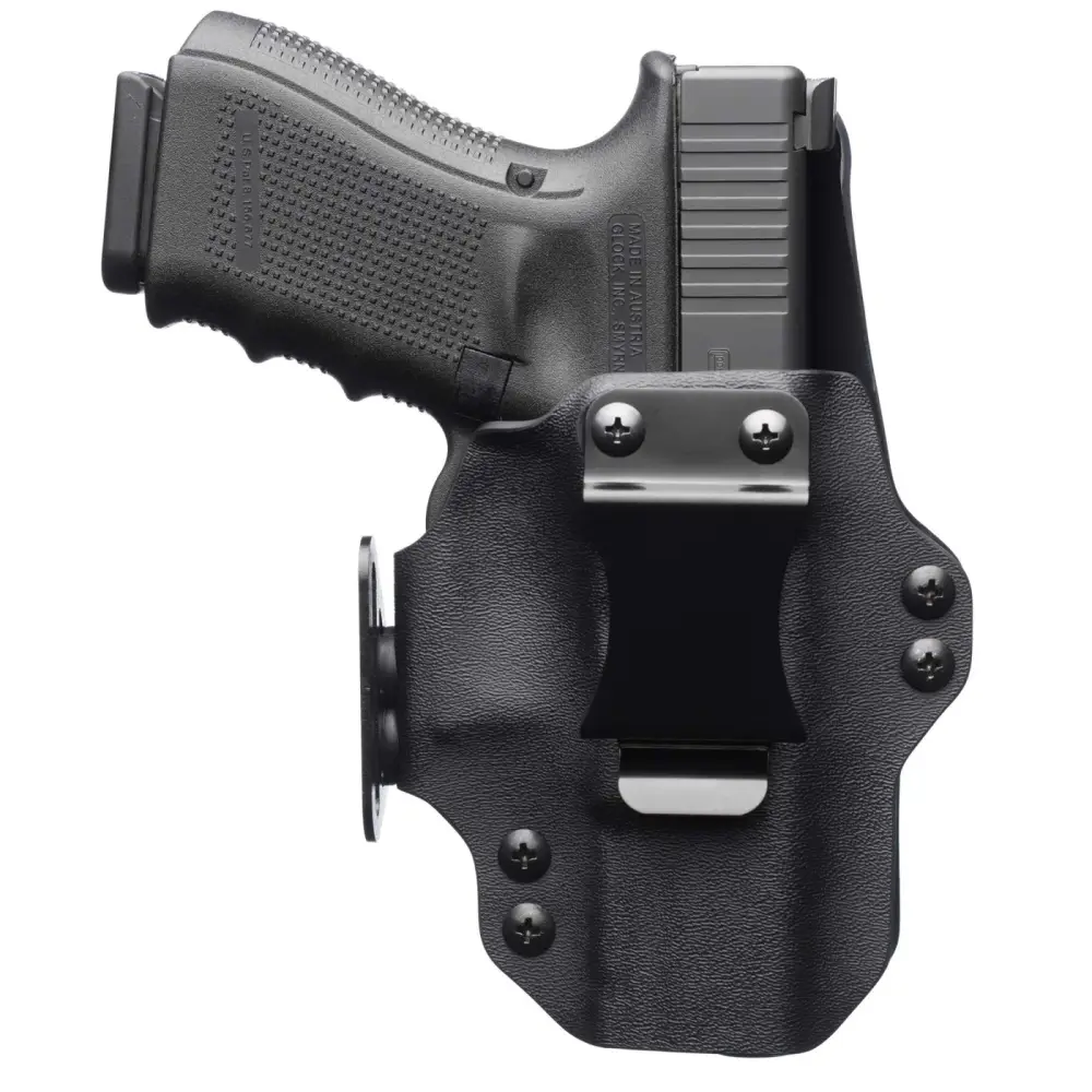 The DualPoint is designed from the ground up to be the ultimate appendix holster. The overall footprint of the holster is minimized through the use of innovative molding techniques and design characteristics which provide a feature set unmatched by any other appendix holster on the market today. The one-piece design, folded from the trigger guard side, incorporates a side mounted strut loop that aids in concealment by pushing the grip in toward the body, significantly reducing how much the gun prints. Featuring user adjustable retention as well as fully adjustable ride height and cant, you can customize the fit of the holster to find the perfect spot that is most comfortable for daily wear. The DualPoint can also be converted to a minimal OWB carry platform, maximizing the value to the end user. All needed hardware to make this conversion is included in every box. Easily configurable by loosening the screws on the IWB belt clip and sliding the clip in the channels to achieve the desired position. Adjustable Retention allows for end user adjustment of holster retention by adjusting trigger side screws. The use of metal IWB and OWB attachments make the holster extremely durable and removes any potential failure points. Can be converted to a minimal OWB platform with the included hardware. Made in the USA.