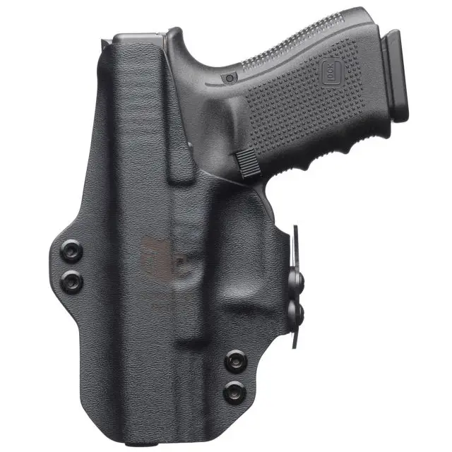 The DualPoint is designed from the ground up to be the ultimate appendix holster. The overall footprint of the holster is minimized through the use of innovative molding techniques and design characteristics which provide a feature set unmatched by any other appendix holster on the market today. The one-piece design, folded from the trigger guard side, incorporates a side mounted strut loop that aids in concealment by pushing the grip in toward the body, significantly reducing how much the gun prints. Featuring user adjustable retention as well as fully adjustable ride height and cant, you can customize the fit of the holster to find the perfect spot that is most comfortable for daily wear. The DualPoint can also be converted to a minimal OWB carry platform, maximizing the value to the end user. All needed hardware to make this conversion is included in every box. Easily configurable by loosening the screws on the IWB belt clip and sliding the clip in the channels to achieve the desired position. Adjustable Retention allows for end user adjustment of holster retention by adjusting trigger side screws. The use of metal IWB and OWB attachments make the holster extremely durable and removes any potential failure points. Can be converted to a minimal OWB platform with the included hardware. Made in the USA.