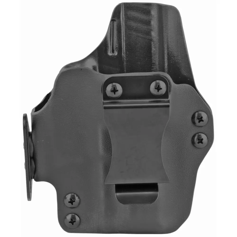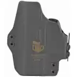 The DualPoint is designed from the ground up to be the ultimate appendix holster. The overall footprint of the holster is minimized through the use of innovative molding techniques and design characteristics which provide a feature set unmatched by any other appendix holster on the market today. The one-piece design, folded from the trigger guard side, incorporates a side mounted strut loop that aids in concealment by pushing the grip in toward the body, significantly reducing how much the gun prints. Featuring user adjustable retention as well as fully adjustable ride height and cant, you can customize the fit of the holster to find the perfect spot that is most comfortable for daily wear. The DualPoint can also be converted to a minimal OWB carry platform, maximizing the value to the end user. All needed hardware to make this conversion is included in every box. Easily configurable by loosening the screws on the IWB belt clip and sliding the clip in the channels to achieve the desired position. Adjustable Retention allows for end user adjustment of holster retention by adjusting trigger side screws. The use of metal IWB and OWB attachments make the holster extremely durable and removes any potential failure points. Can be converted to a minimal OWB platform with the included hardware. Made in the USA.