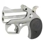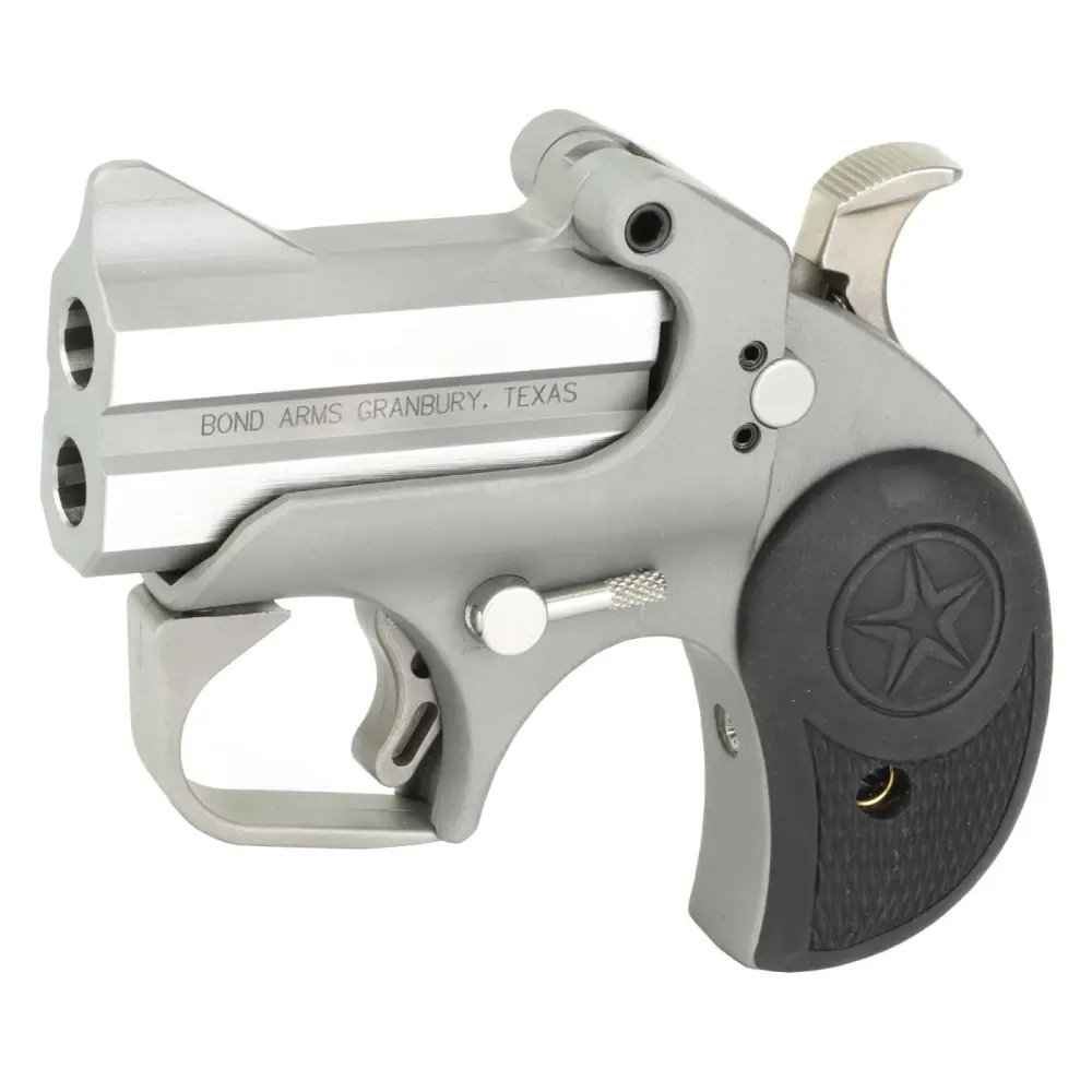 Roughneck is compatible with all standard Bond Arms barrels for easy caliber conversions. The pistol has stainless steel double-barrel and frame, the barrels and trigger are polished and the frame is sand blasted. Features- patented rebounding hammer, retracting firing pins, cross-bolt safety and spring-loaded, cammed locking lever.