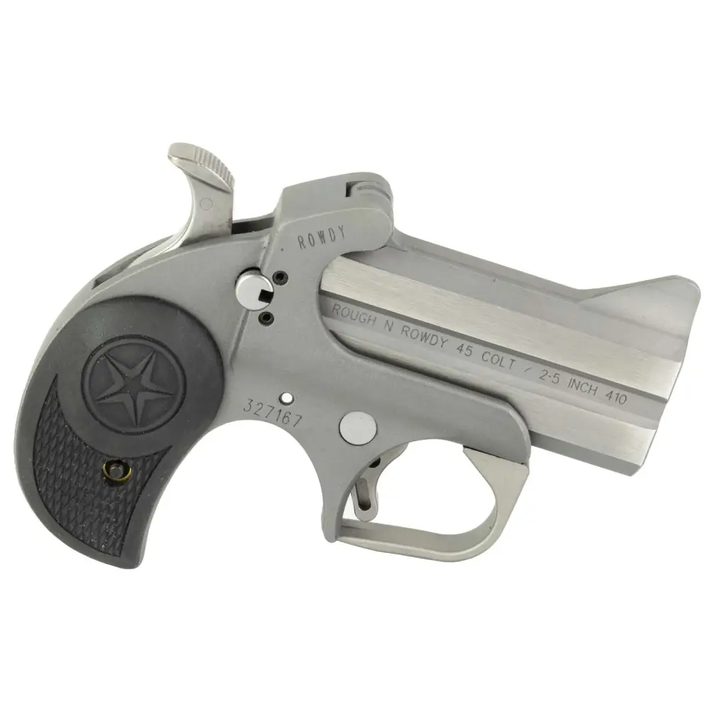 Bond Arms BARW Rowdy 410/45 Colt (LC) Derringer 3" 2 Black Rubber Grip Polished Stainless Steel Frame