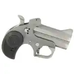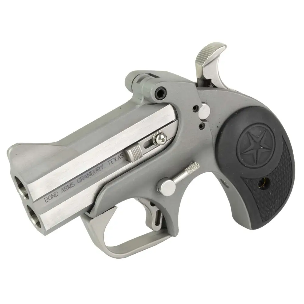 Rowdy is compatible with all standard Bond Arms barrels for easy caliber conversions. The pistol has stainless steel double-barrel and frame, the barrels and trigger are polished and the frame is sand blasted. Features- Automatic spent casting extractor, patented rebounding hammer, retracting firing pins, cross-bolt safety and spring-loaded, cammed locking lever.