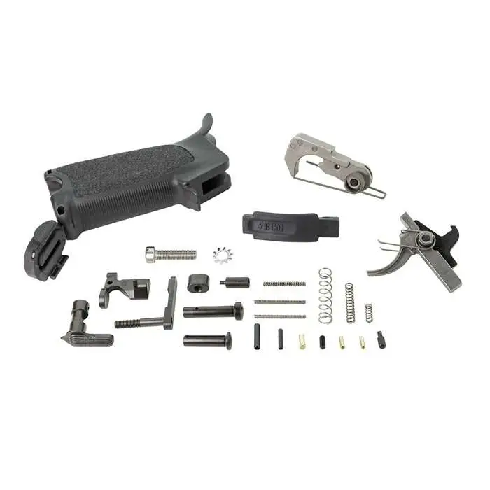 This item is an Enhanced Lower Parts Kit from Bravo Company. It fits the AR-15 firearm, and comes with a Polished Nickel Teflon trigger.