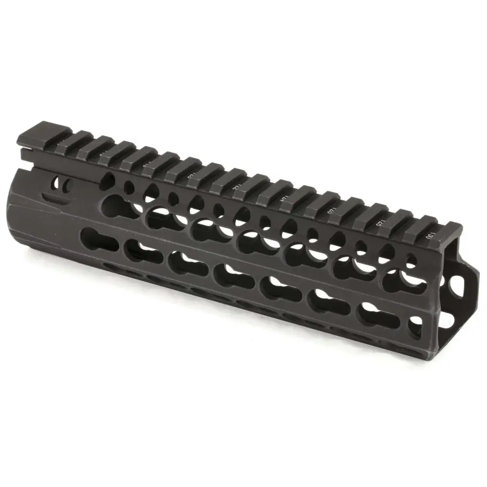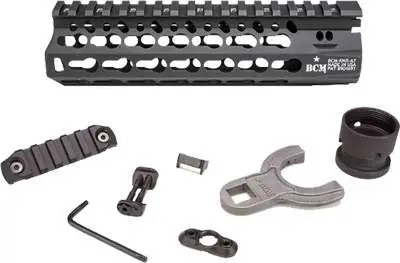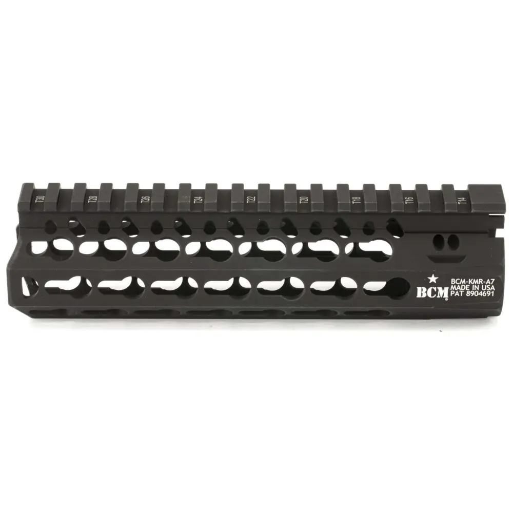 Bravo's KMR Alpha is constructed of aluminum with a hardcoat anodized finish for corrosion resistance and is free-floating. Its interface system was developed to work in parallel with the current picatinny system. This rail system allows for a larger range of modularity offering four different offset mounting positions between traditional 3,6,9, and 12:00 positions. Included is a BCM KeyMod sling mount .