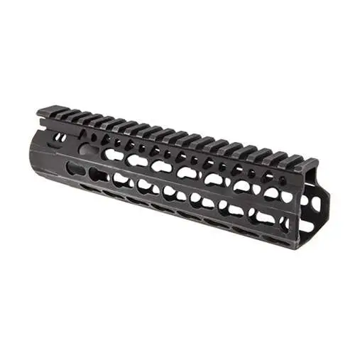 Bravo's KMR Alpha is constructed of aluminum with a hardcoat anodized finish for corrosion resistance and is free-floating. Its interface system was developed to work in parallel with the current picatinny system. This rail system allows for a larger range of modularity offering four different offset mounting positions between traditional 3,6,9, and 12:00 positions. Included is a BCM KeyMod sling mount .