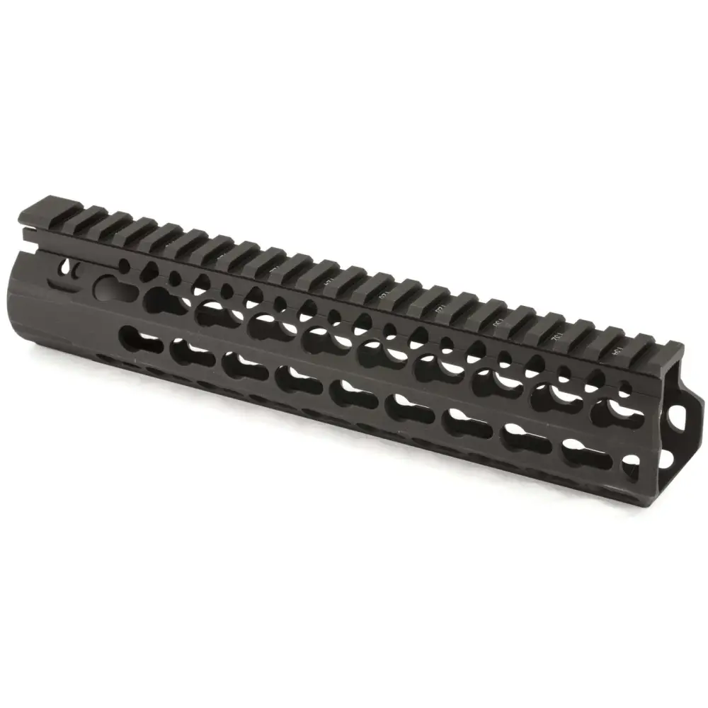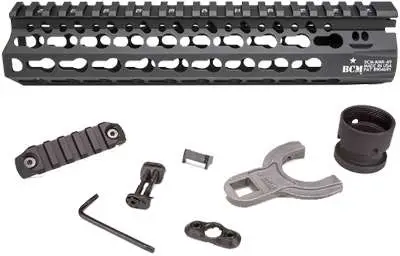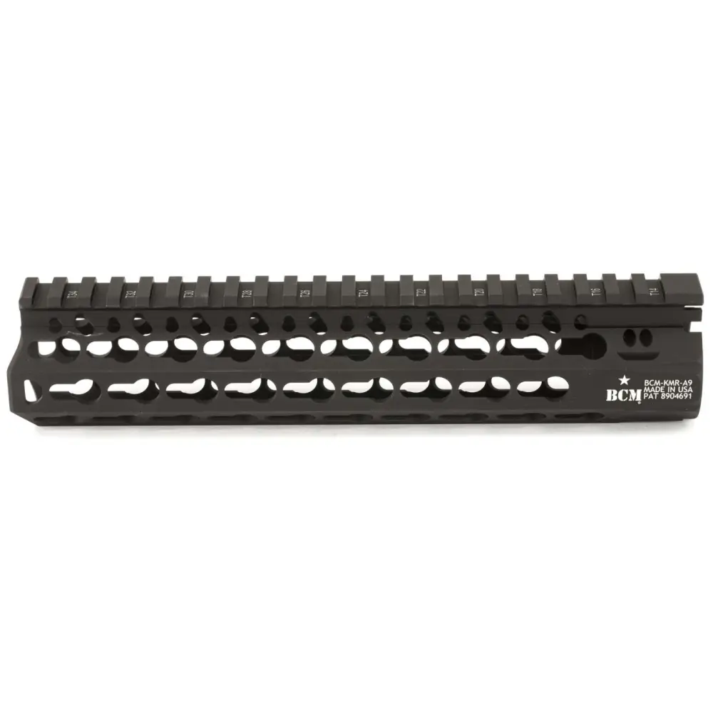 Bravo's KMR Alpha is constructed of aluminum with a hardcoat anodized finish for corrosion resistance and is free-floating. Its interface system was developed to work in parallel with the current picatinny system. This rail system allows for a larger range of modularity offering four different offset mounting positions between traditional 3,6,9, and 12:00 positions. Included is a BCM KeyMod sling mount .