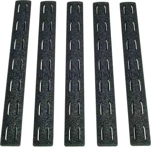 This Keymod Rail Panel kit is made to fit all KeyMod mounting surfaces with seven consecutive KeyMod Slots. It has a ultra-slim and radiused surface which allows a "round" handguard feeling, from an octagonal profile, aggressive non-slip or non-reflective surface, and is ventilated for cooling. Included is a bi-directional locking tabs on either end, depending which direction they are installed and five matching color KeyMod panel strips.