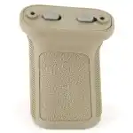 This vertical keymod model 3 grip has a low-profile length for increased mobility and decreased "snag" factor. The forward angle increases the rigidity of the forearm, while providing a more natural wrist angle. It features a anchor and bolt system which offers a simple robust design, while maintaining to be lightweight.