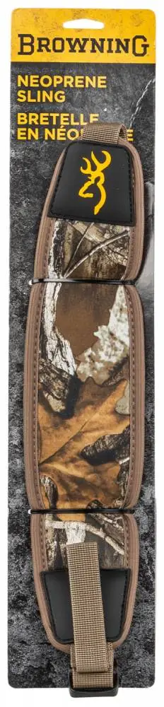 Neoprene has been used in all sorts of hunting and fishing equipment for a variety of reasons. Browning used it in a big game rifle sling specifically for comfort. As you walk, especially through wooded or mountainous terrain, your body moves up and down. The neoprene pad on this sling will absorb the shock from this motion, allowing the gun to comfortably "bounce" a short distance as you scout or make your way to your stand.