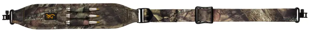 Browning's full line of slings serve to lighten a hunter's load, and are designed to blend in with the surroundings or make a subtle style statement. The All Season sling allows you to carry your long gun comfortably. Its padded shoulder strap with textured back prevents the sling from slipping off the shoulder. The sling features a molded logo, elastic ammo loops, thumb loop for comfort and ease of adjustment and metal sling swivels included. This model has a Mossy Oak Break-Up Country camo finish.
