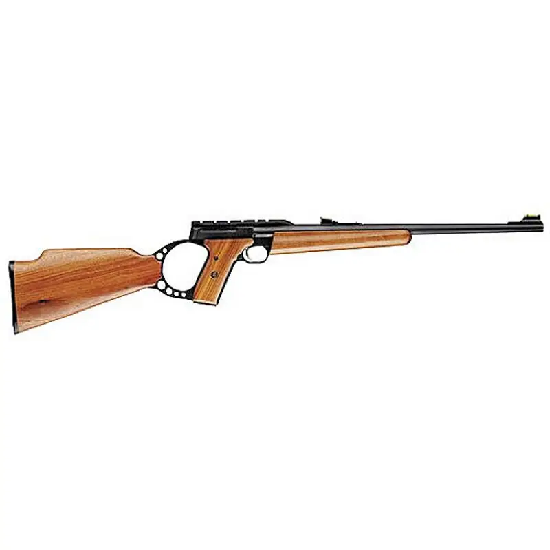 The Buck Mark Sporter features a target crown matte blued finish, tapered sporter barrel, an oil finish walnut stock, integral scope rail and Truglo/Marble s adjustable fiber-optic sights, detachable box magazine, blowback semi-automatic operation, and a single action trigger. The frame is machined from a solid block of 7075-T6 aluminum for strength and longevity.