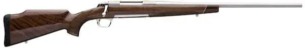 Browning's X-Bolt builds on the proven successes of past Browning rifles, and adds numerous improvements. Its adjustable three-lever Feather Trigger system provides a clean, crisp pull with no take-up. The barrel is free-floated by bedding the front and rear of the action for stability and to help maintain barrel to stock spacing for consistent accuracy. A recessed muzzle crown helps protect the rifling from damage. The bolt unlock button works in conjunction with the top-tang safety to provide an added measure of safety, while the 60 degree bolt lift is fast cycling and allows you to work the bolt quickly. The Medallion model is presented with a fine gloss-finished, checkered walnut stock. Insuring long-range accuracy is the totally free-floated barrel and Feather Trigger System, two of the most critical components of any high-powered hunting rifle. The high-grade Walnut stock with detailed checkering provides classic good looks. Rosewood caps on the fore-end and grip offer additional elegance.