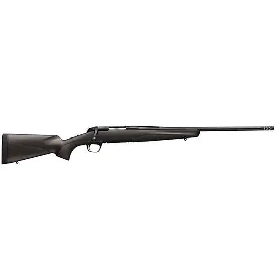 Browning's X-Bolt has a free-floated barrel for stability and maintains barrel to stock spacing, while the recessed muzzle crown helps protect the rifling from damage. It has a bolt unlock button and a top-tang safety. The X-Bolt also features an adjustable three-lever Feather Trigger system which provides a clean, crisp pull with no take-up or creep and minimal overtravel. It includes X-Lock scope mounts. This 308 Winchester Micro Composite model has a black composite stock with Dura-Touch coating, matte blued treaded barrel, detachable rotary magazine, and a short throw bolt. Included is a thread protector cap.