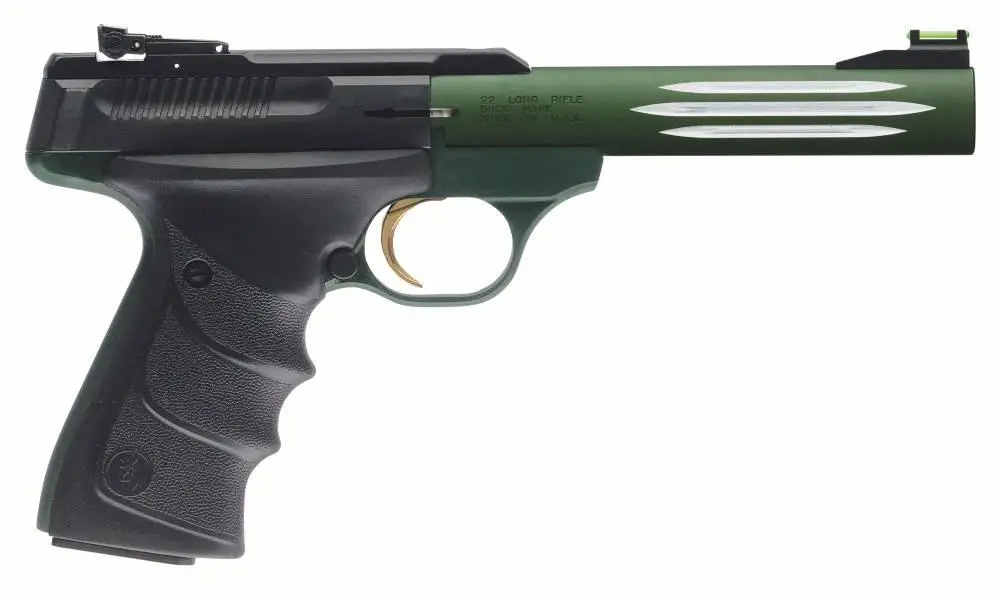 Browning's Buck Mark rimfire pistol leads the industry in quality, reliability, accuracy and variety. It is constructed of a solid piece of aircraft-grade 7075 aluminum alloy, and then CNC machined to exacting tolerances. The crisp single-action trigger, hand reamed chamber, target crowned barrel and finely adjustable target sights mean the Buck Mark comes ready for fun straight from the box. Its slide features built-in recess and raised side panels for better grip along with a manual slide release. The Buck Mark utilizes a Pro-Target rear sight and a manual thumb safety.