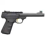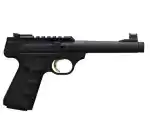 Browning's Buck Mark rimfire pistol leads the industry in quality, reliability, accuracy and variety. It is constructed of a solid piece of aircraft-grade 7075 aluminum alloy, and then CNC machined to exacting tolerances. The crisp single-action trigger, hand reamed chamber, target crowned barrel and finely adjustable target sights mean the Buck Mark comes ready for fun straight from the box. Its slide features built-in recess and raised side panels for better grip along with a manual slide release. The Buck Mark utilizes a Pro-Target rear sight and a manual thumb safety. The Plus Camper model features a tapered bull barrel, single-action, and a Picatinny rail. It includes a pistol rug. This Suppressor ready model has a matte black frame and slide, threaded steel barrel with thread protector, and black Ultragrip FX grips.