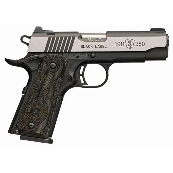 Browning 1911-380 Black Label Medallion Pro Compact Single 380 Automatic Colt Pistol (ACP) 3.625" 8+1 Laminate Black Grip Stainless Steel
