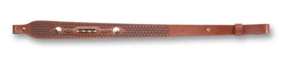 Browning's full line of slings serve to lighten a hunter's load, and are designed to blend in with the surroundings or make a subtle style statement. The Buffalo Nickel sling features unique buffalo nickel overlays and braided horsehair inlay panel. Its full-grain leather construction with classic basketweave design and comfortable suede backing, while the tapered shape provides added width at shoulder. The sling has an adjustable length and is compatible with most rifles. Swivels are not included.