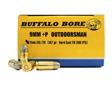 Buffalo Bore Ammunition 24L/20 Outdoorsman 9mm Luger +P 147 gr Hard Cast Flat Nose (HCFN) 20 Bx/ 12 Cs